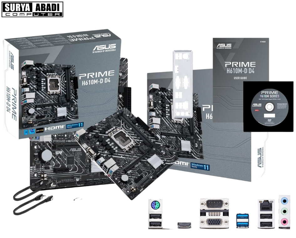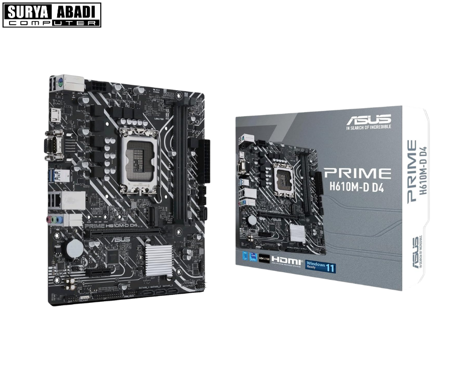 ASUS Prime H610M-D D4 Motherboard mATX, Intel H610, LGA1700, DDR4, PCI 4.0, Realtek 1Gb Ethernet, Realtek 7.1 Surround, 1xM.2, 4xSATA 6GB/s, USB 3.2 Gen 1, Armoury Crate, Black